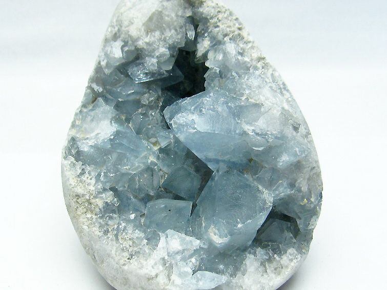 セレスタイトは、硬度が3.5と柔らかい上に「劈開(へきかい)」が非常に強い石です。そのため、ジュエリー等の加工が非常に難しく、インテリアストーンやベッドサイドストーンとして人気があります。